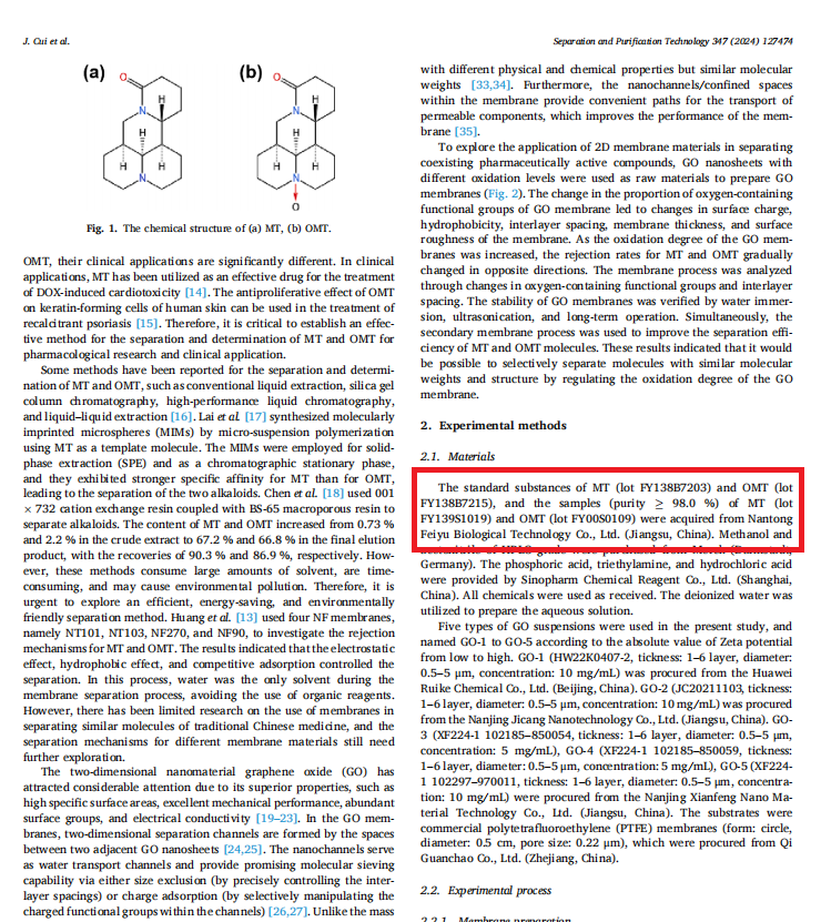 Selective separation of structurally similar alkaloids by graphene oxide membranes