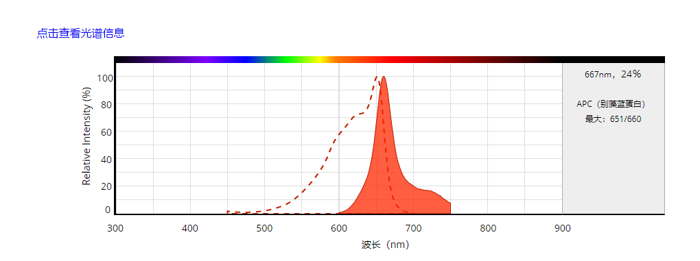 別藻藍蛋白 APC是由藻膽蛋白提取出的一種熒光染料。藻膽蛋白由許多亞基組成,每個亞基具有蛋白質(zhì)骨架,線性四吡咯發(fā)色團與其共價結(jié)合。藻紅蛋白(紅色)和藻藍蛋白(藍色)是兩種主要的藻膽蛋白。藻紅蛋白(PE)的吸收最大值介于490和570nm之間,而藻藍蛋白(PC)的吸收最大值介于610和665nm之間。通常,當(dāng)作為硫酸銨沉淀物冷藏儲存時,藻膽蛋白具有良好的長期穩(wěn)定性。純化的膽脂蛋白可以在酸性或堿性條件下解離成亞基,但在室溫下在中性pH下相對穩(wěn)定,濃度大于0.1mg / mL。解離的亞基通常具有比天然色素更低的著色和熒光。建議將所有藻膽蛋白及其結(jié)合物(優(yōu)選在中性緩沖溶液中)冷藏,從不冷凍。