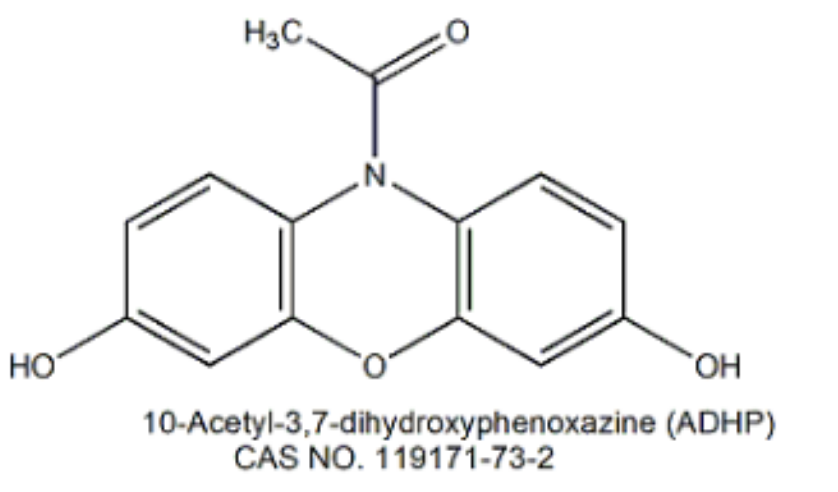 別 名 BES-H2O2-Ac; 10-Acetyl-3,7-dihydroxyphenoxazine; Ampliflu Red; 10-Acetyl-3,7-dihydroxyphenoxazine; 1-(3,7-dihydroxy-10H-phenoxazin-10-yl)-ethanone; H2O2 probe;